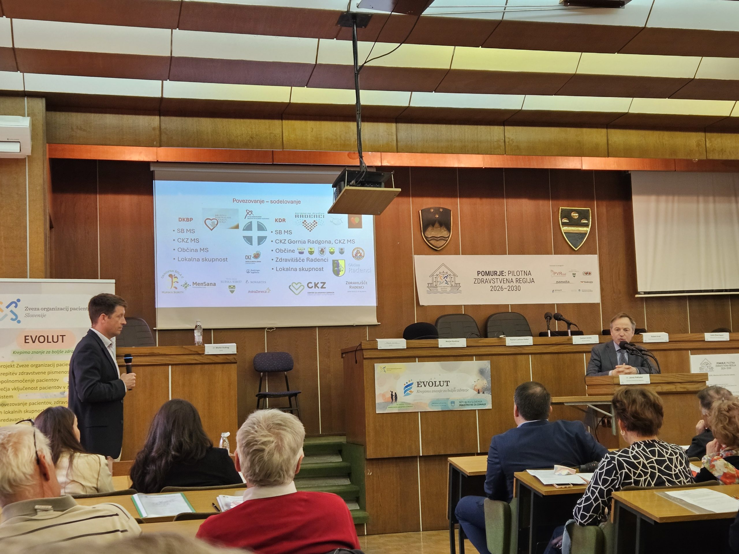 Udeležili smo se dogodka »Pomurje – pilotna zdravstvena regija 2026–2030«, ki ga je organizirala Zveza organizacij pacientov Slovenije (ZOPS), katere ustanovni član je tudi naša Zveza. Dogodek je namenjen povezovanju pacientskih organizacij, zdravstvenih institucij, preventivnih programov, lokalnih skupnosti, gospodarstva in drugih ključnih deležnikov v regiji. Poseben poudarek pa je bil namenjen o zdravstvenih izzivih Pomurja ter možnostih, da regija v obdobju 2026–2030 postane pilotno okolje za razvoj novih pristopov na področju zdravja prebivalstva. Pomurje se že dalj časa sooča z izrazitimi zdravstvenimi izzivi, med drugim z višjo pojavnostjo kroničnih bolezni in slabšo dostopnostjo določenih zdravstvenih storitev. Prav zato ima regija tudi velik potencial, da postane prostor za razvoj in preizkušanje novih rešitev, ki bi jih bilo mogoče prenesti tudi v druge dele Slovenije.